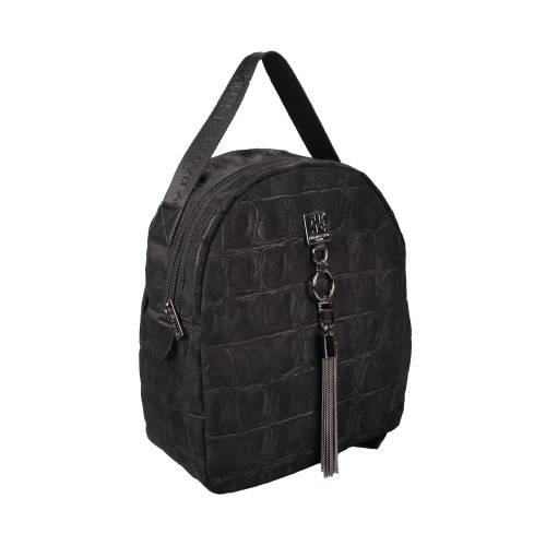 Σακίδιο πλάτης κροκό μεσαίου μεγέθους με φερμουάρ σε μαύρο χρώμα και διακοσμητικό κρόσι στο μπροστά μέρος