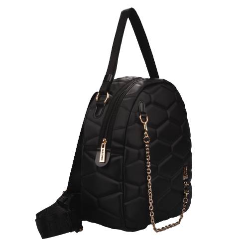 Σακίδιο πλάτης μεγάλου μεγέθους με μαγνητικό κούμπωμα σε μαύρο χρώμα και διακοσμητική αλυσίδα στο μπροστά μέρος