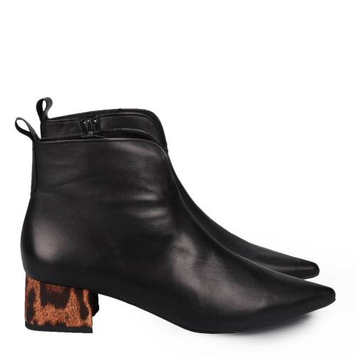 Μποτάκι δερμάτινο με γκέτα σε μαύρο χρώμα και ιδιαίτερο λεοπάρ σχέδιο