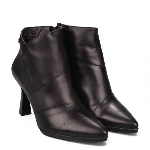 Μποτάκι δερμάτινο σε μαύρο χρώμα, με chic λεπτό τακούνι και φερμουάρ για άνετη εφαρμογή