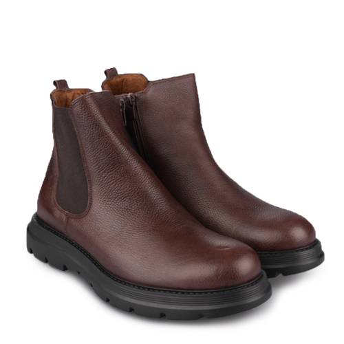 Μποτάκι δερμάτινο με φερμουάρ και λάστιχα για άνετη εφαρμογή και extra light σόλα, σε καφέ χρώμα