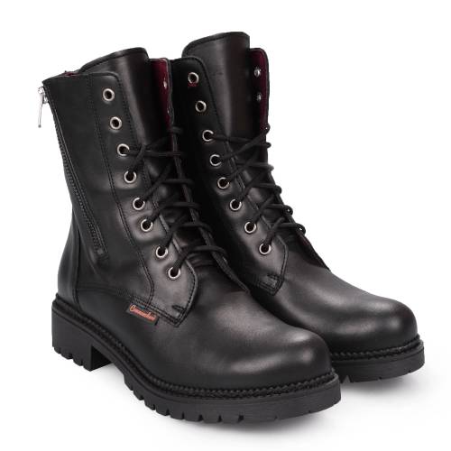 Μποτάκι δερμάτινο, δετό με φερμουάρ για άνετη εφαρμογή, σε μαύρο χρώμα