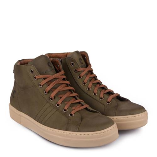 Μποτάκι με nubuck δέρμα, δετό με φερμουάρ για άνετη εφαρμογή και extra light σόλα, σε λαδί χρώμα