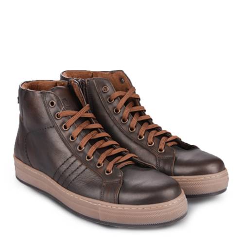 Αρβυλάκι δερμάτινο δετό με φερμουάρ για άνετη εφαρμογή και extra light σόλα, σε καφέ χρώμα