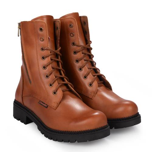 Αρβυλάκι δερμάτινο, δετό με φερμουάρ με τρακτερωτή σόλα και πολυ μαλακό πέλμα σε ταμπά χρώμα