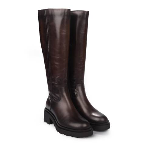 Μπότα δερμάτινη κάτω από το γόνατο σε σκούρο καφέ χρώμα, με φερμουάρ για άνετη εφαρμογή και extra light σόλα