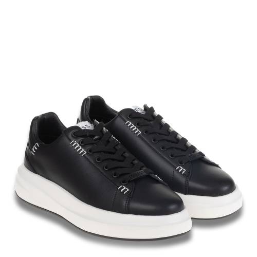 Δερμάτινο αθλητικό δετό σε μαύρο χρώμα, με καστόρινες λεπτομέρειες και κρεπ σόλα