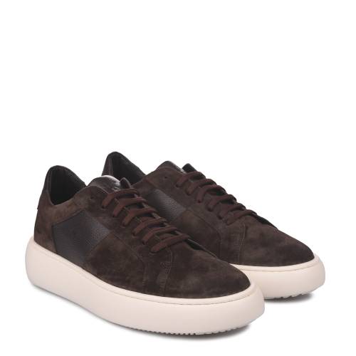 Δερμάτινο σαμουά ανατομικό αθλητικό δετό με κορδόνια και άσπρη σόλα σε ταμπά χρώμα