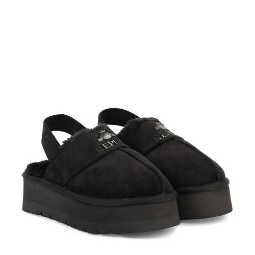 Σαμπώ δίπατο, ανοιχτό πίσω με λουράκι για εύκολη εφαρμογή και εσωτερική γούνα σε χρώμα μαύρο