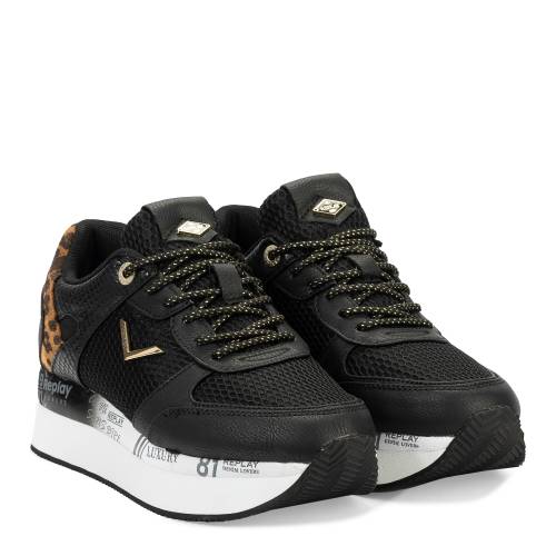 Αθλητικό δετό σε μαύρο χρώμα με δίπατη σόλα και λεοπάρ λεπτομέρεια στο πίσω μέρος