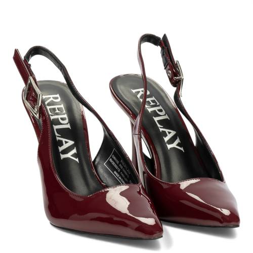 Λουστρίνι γόβα εξώφτερνη, μυτερή με λουράκι σε μπορντό χρώμα
