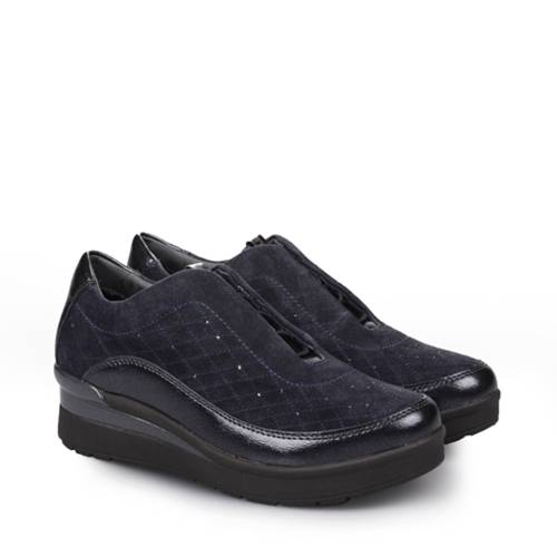 Ανατομικό δερμάτινο αθλητικό δίπατο, δετό με κορδόνια, διάτρητο στο πάνω μέρος σε μπλε χρώμα
