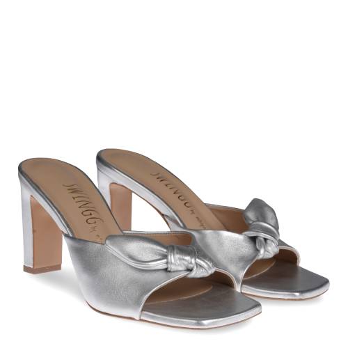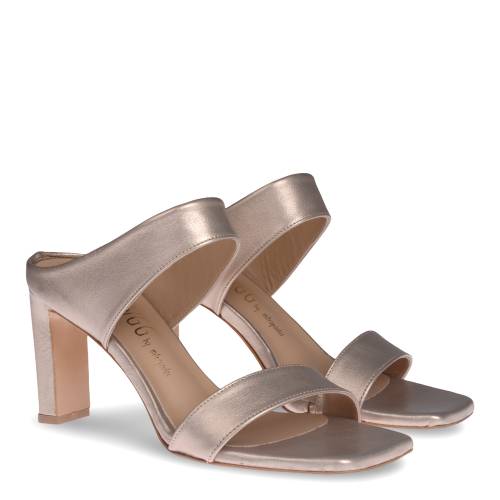 Κατασκευασμένο από γνήσιο δέρμα με μεταλλικό φινίρισμα, διαθέτει κομψό minimal σχεδιασμό με ανοιχτό μπροστινό μέρος και σταθερό τακούνι που προσφέρει άνεση και στυλ σε κάθε εμφάνιση.