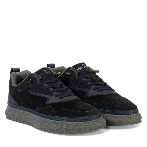 Ανατομικό καστόρινο αθλητικό δετό με extra light σόλα, σε μπλέ χρώμα και γκρί σόλα